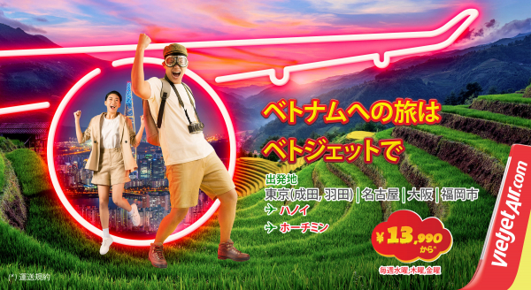 (*) ベトジェットの国際線全路線において、すべての税金とサーチャージを含む支払総額に適用。各市場の祝日とピークシーズンを除く。