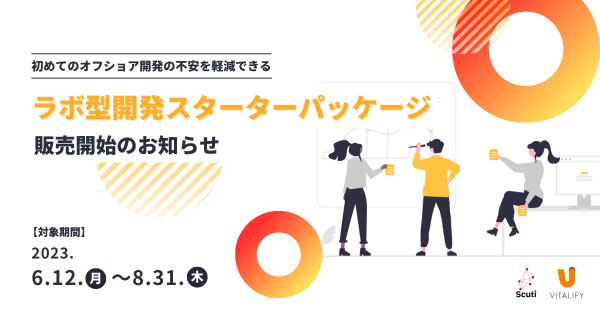 顧客のDX化を総合的に支援するバイタリフィ(東京都渋谷区、代表取締役:川勝潤治)と子会社 スクーティー(代表取締役:掛谷知秀)が、初めてオフショア開発の不安を軽減できる「ラボ型開発スターターパッケージ」の販売を2023年6月12日(月)より開始することをお知らせいたします。
