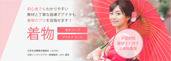 講座で学ぶ内容は日本生活環境支援協会の「着物マイスター(R)」(https://www.nihonsupport.org/syumishikaku/kimono/)、日本インストラクター技術協会の「着付け方インストラクター」(https://www.jpinstructor.org/shikaku/kitsuke/)それぞれの資格試験対策になっています。
