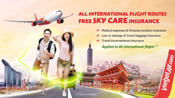 (東京、2023年6月8日) -ベトジェットは、旅先での大小の事故や損失からお客様を守るため、6月6日より、ベトナムと日本(東京、大阪、福岡、名古屋)、オーストラリア(ブリスベン、シドニー、メルボルン)、インド(コーチ、ニューデリー、ムンバイ、アーメダバード)、韓国(ソウル、釜山、大邱)、香港、台湾、インドネシア(ジャカルタ、バリ)、シンガポール、マレーシア、タイ、カザフスタン、その他を結ぶ国際線にご搭乗のお客様を対象に、包括的な保険パッケージ「スカイケア」(Sky Care) の無料提供を開始しました。