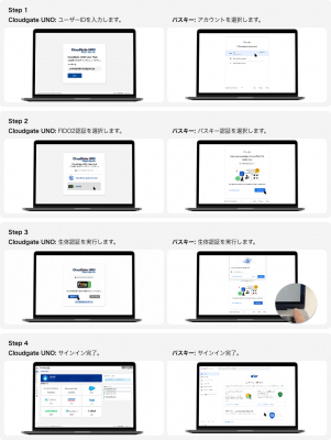 現在、ISRではCloudGate UNOの全プランにおいてFIDOによるパスワードレス認証機能を追加費用なしで提供しております。このパスワードレス認証は、今回Googleがサポートを表明したパスキーを使ったサインイン方法と全く同じ、シンプルな手順になります。