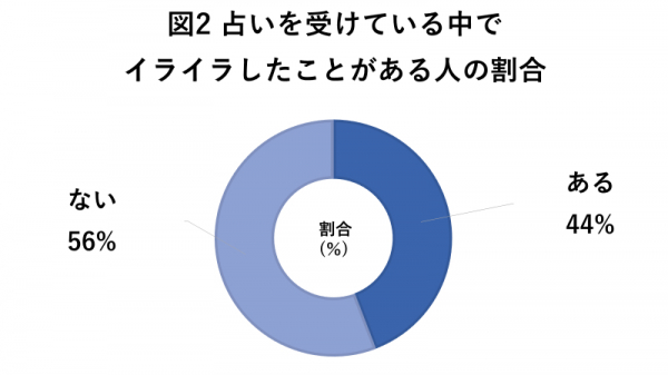 占いを受けている中で、イライラしたことがある方は全体のうち44%を占めていました。