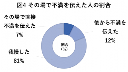 調査の結果では、占いの不満は伝えず、我慢する方が多数。その場で直接伝える方や後から不満を伝える方はそれぞれ10%前後。
