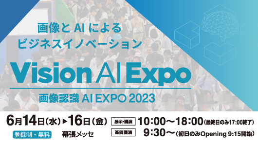 6月14日および15日に幕張メッセで開催される画像認識 AI EXPO 2023会場内の専門セミナーで、「AI導入の最新動向 ~ChatGPT等生成AIのトレンドや画像認識、需要予測の動向まで~」をテーマに代表の板羽が登壇いたします。ぜひご来場ください。