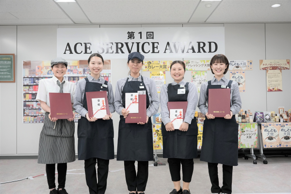 ※「ACE SERVICE AWARD(エースサービスアワード)」は、株式会社エースが運営する食料品専門店「北野エース」全国の店舗スタッフを対象とした社内接客コンテストです。社歴や役職、経験に関係なく店舗スタッフが参加し、接客力向上を目的として実施いたしました。