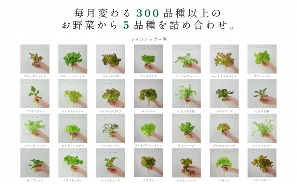 取扱い商品:葉物野菜5種詰め合わせ(3サイズ)、活野菜ボウル(1サイズ)