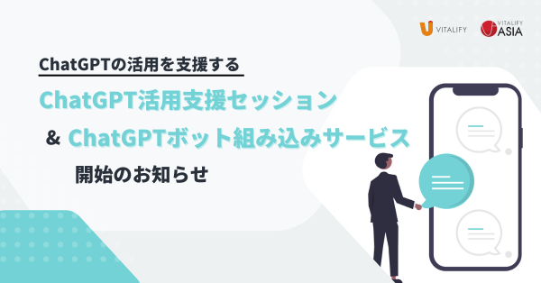 顧客のDX化を総合的に支援するバイタリフィ(東京都渋谷区、代表取締役:川勝潤治)と子会社 Vitalify Asia(本社:ベトナム国ホーチミン市、代表:櫻井岳幸)は、企業のChatGPTの活用を支援する「ChatGPT活用支援セッション」と「ChatGPTボット組み込みサービス」を2023年6月1日(木)より開始したことをお知らせいたします。