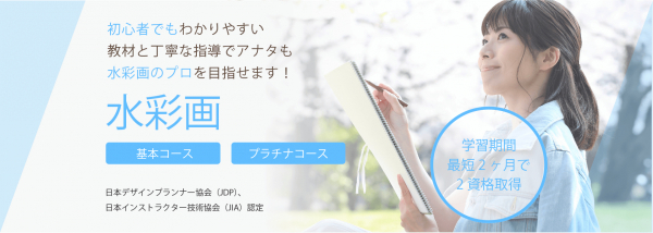 講座で学ぶ内容は日本デザインプランナー協会の「水彩アーティスト(R)」(https://www.designshikaku.net/syumi/suisai/)、日本インストラクター技術協会の「水彩画インストラクター」(https://www.jpinstructor.org/shikaku/suisai/)それぞれの資格試験対策になっています。