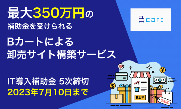 株式会社サンクユー(東京都品川区、代表取締役社長:堀川治)は、2023年6月20日、最大350万円のIT導入補助金の交付申請が可能な「Bカートによる卸売サイト構築」5次締切分を開始いたしました。