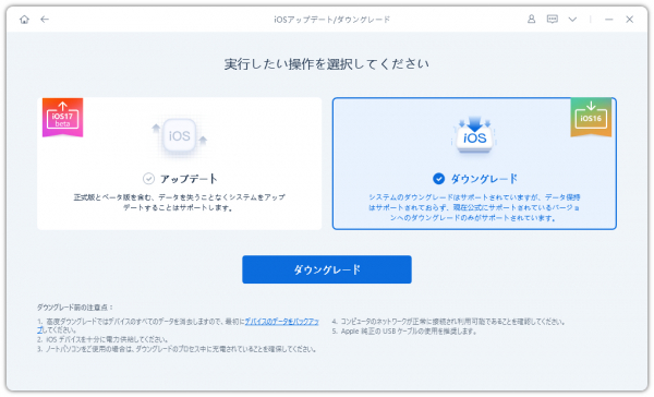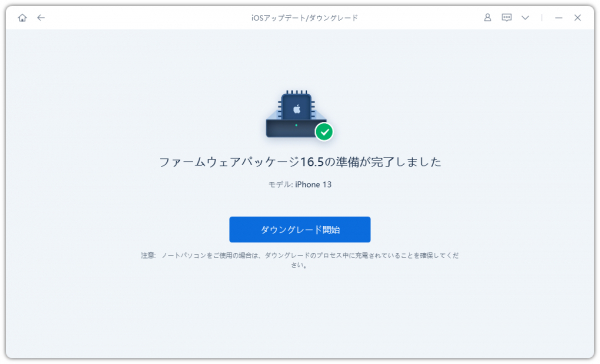Step 3、ダウンロードされたら、「ダウングレード開始」をクリックして、iOS 17ベータ版のダウングレード作業を開始します。