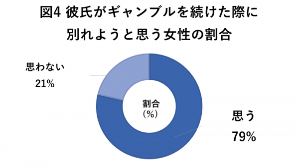 将来への不満や金銭感覚のズレもあるためか、彼氏がギャンブルを続けた際には、別れを選ぶ女性が多い結果となりました。