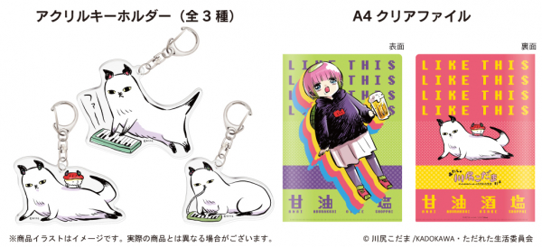 また同日に描き下ろしイラストを使用した雑貨の販売も行い、クリアファイル、アクリルキーホルダー(3種類)となっております。