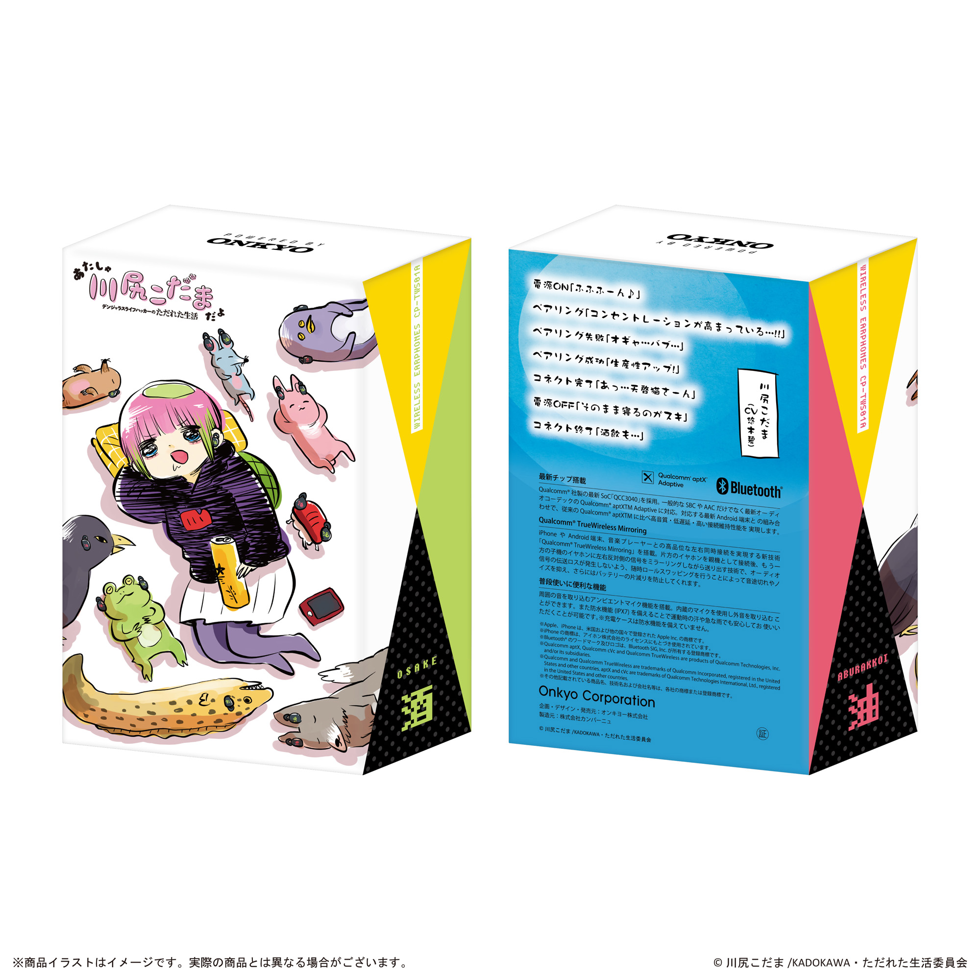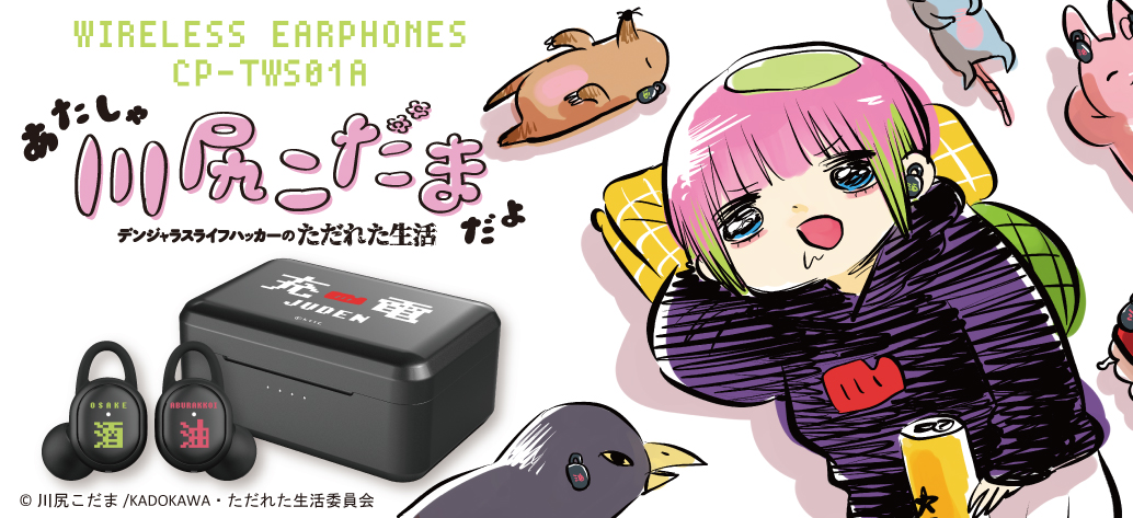 オンキヨー株式会社(所在地:大阪府大阪市、代表取締役社長:大朏 宗徳)は、完全ワイヤレスイヤホン「CP-TWS01A」とTwitterでの総いいね数が1000万を超え,アニメ化もされた漫画「あたしゃ川尻こだまだよ~デンジャラスライフハッカーのただれた生活~」※1とのボイス入りコラボレーションワイヤレスイヤホンを6月27日(火)から予約販売致します。