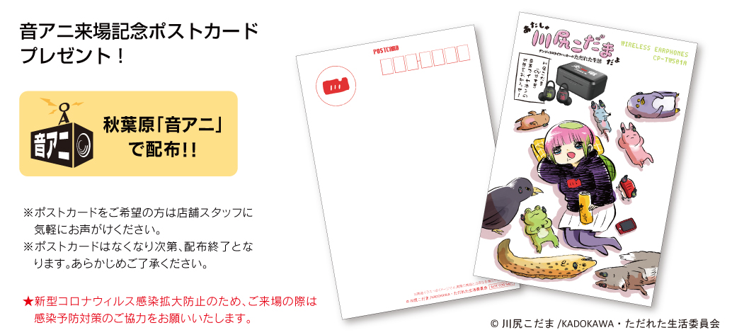 弊社秋葉原店舗「ONKYO DIRECT ANIME STORE」にて6月27日(火)15:00より実機展示を実施致します。本モデルに搭載される録り下ろしボイスや音質の確認が可能で、店頭設置の専用QRコードにてご予約も可能です。ご来店特典として、オリジナルポストカードの配布をさせていただきます。ただし、配布数量には上限がございますので、無くなり次第終了となります。