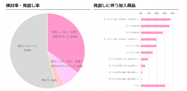 また、今回の調査では、親の保険の見直しと子どもの保険加入では、検討開始時期・加入時期が異なることが分かった。この時期の違いを見定めて、親の保険について訴求するのか、子どもの保険について訴求するのか、を選択していく必要があると考えられる。