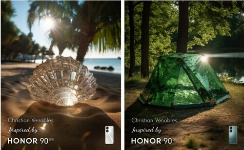 のデザイン哲学に触発された同氏は、HONOR 90の色とバックカバーの要素をAIツールを用いて作品デザインに統合しました。HONORとVenablesは、アーティスト視点からの最適化を行った上で、AI生成による絶妙な雰囲気の作品を次々と世に送り出しました。