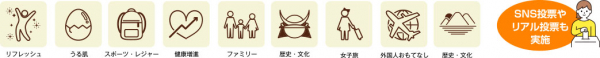 エントリー部門 :リフレッシュ部門、うる肌部門、スポーツ・レジャー部門、健康増進部門、