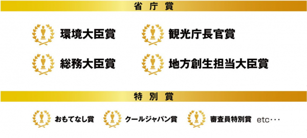省庁賞・特別賞 :環境大臣賞、地方創生担当大臣賞、総務大臣賞、観光庁長官賞、特別賞(10賞程度)