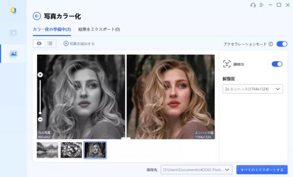 STEP4:白黒写真のカラー化を開始する。カラー化された写真をエクスポートする