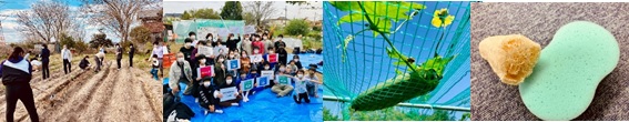 ・「ヘチマプロジェクト」活動を複数の地域で連携(行政、教育委員会、学校、企業等)し、子供たちが作った「ヘチマたわし」を家庭や地域企業で使うことで海の環境を改善します。