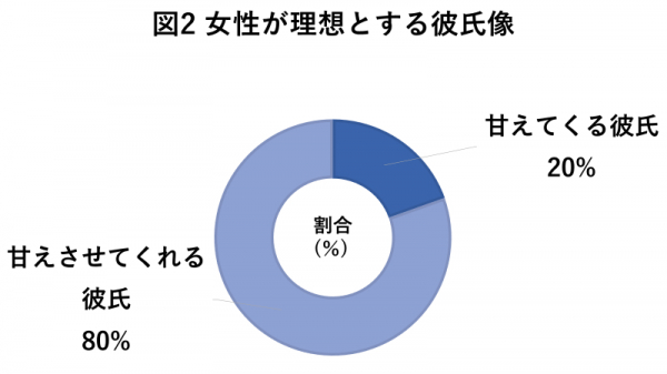 「甘えてくる彼氏」を好む女性は20%に対し、「甘えさせてくれる彼氏」を好む女性は80%。