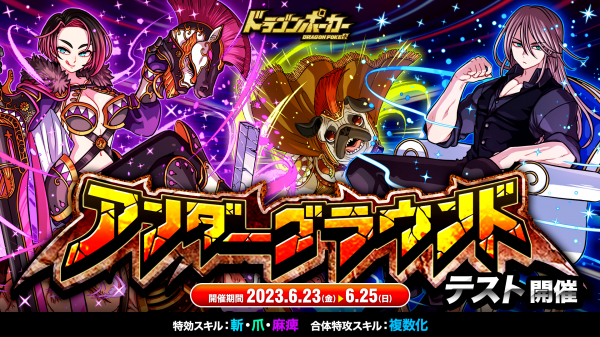株式会社アソビズム(本社:東京都千代田区、代表取締役:大手智之)は、App Store・Google Playにて好評配信中のリアルタイム合体カードバトル『ドラゴンポーカー』で、2023年6月23日(金)より「アンダーグラウンド」をテスト開催いたします。