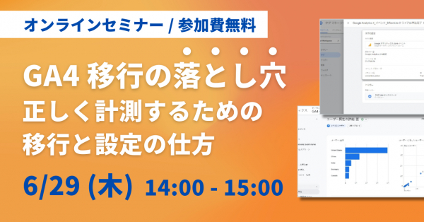 本セミナーでは、大手・中小企業向けに GA4 移行を推進・支援したコンサルタントが、 GA4 移行時のよくある失敗や正しく計測するための設定方法、移行におけるポイントについて解説します。