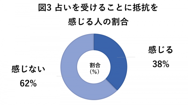 占いを受けることに抵抗を感じるかどうか、という点について回答を求めたところ、抵抗を感じない方が6割以上を占めていました。