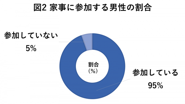 結果、回答者のうち95%が「参加している」と回答。大半の男性は家事に参加していることが明らかとなりました。