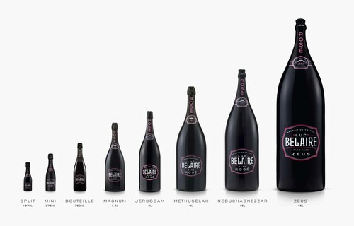 Sizing up! The Luc Belaire range from the minute 187 ml Belaire Split to the enormous 45-liter Belaire ZEUS