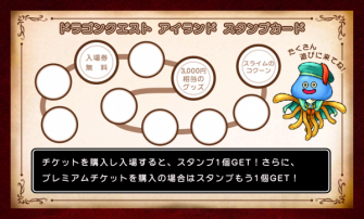 特 典:スタンプ3個/ドラゴンクエスト アイランド「入場券」1枚をプレゼント