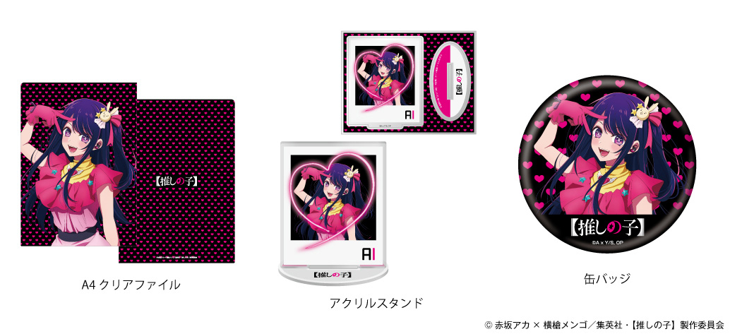 また描き下ろしイラストを使用したグッズの販売も実施。種類はアクリルスタンド、クリアファイル、缶バッジとなります。