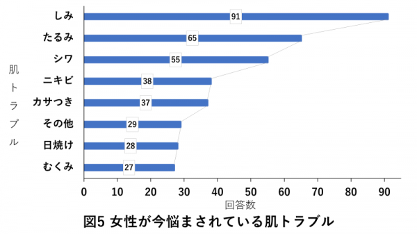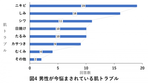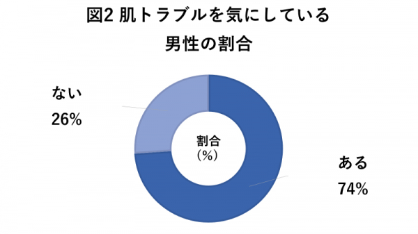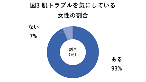 肌トラブルを気にしている割合については、男性よりも女性の方が多いことが明らかとなりました。