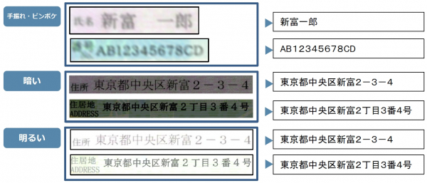 また記載項目の論理チェック、住所変更欄の記載有無チェック、秘匿情報部分のマスキング機能を搭載し、各種カード発行業務、会員情報登録業務、店舗での受付業務など、本人確認ソリューションに最適なライブラリとなっています。