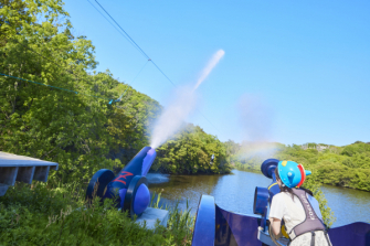 「クレヨンしんちゃんアドベンチャーパーク」が運営する、湖上を駆け下りる全長225mの往復ジップライン「アクション仮面飛行隊」では、滑空中の参加者めがけて、ゴール地点に設置した2つの「水大砲」から大量の水を打ち放つ『ブラックメケメケ団の本気!?しん次元スプラッシュ!~ジップライン~』を7月1日(土)~9月30日(土)の期間限定で開催いたします。約1分の間、湖上を駆け下りる絶叫ジップラインが、大量のスプラッシュでさらにパワーアップ!水しぶきのカーテンに包まれる360°びしょ濡れ“しん次元”体験で、大興奮、大絶叫のジップラインに大切な友達たちと一緒に飛び乗ろう!ゴールした後は、びしょ濡れ同士で笑顔をパシャリ!笑顔溢れる爽快&絶叫ジップラインで、淡路島の夏を遊びつくそう!