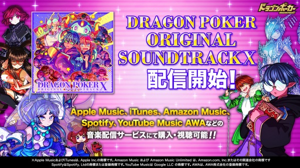 過去にリリースした「ドラゴンポーカー オリジナルサウンドトラック」も引き続き好評配信中です。思い出のスペシャルダンジョン等のBGMをこの機会にぜひご視聴ください。