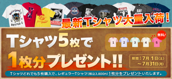 ■タイトル 「Tシャツ5枚で1枚分プレゼント」キャンペーン