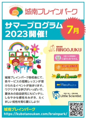 株式会社城南進学研究社(本社:神奈川県川崎市、代表取締役社長CEO:下村勝己、以下当社)が運営する児童教育の複合型スクール「城南ブレインパーク」は、2023年7月26日(水)~8月30日(水)の夏休み期間に、「夏のイベント2023」を開催いたします。