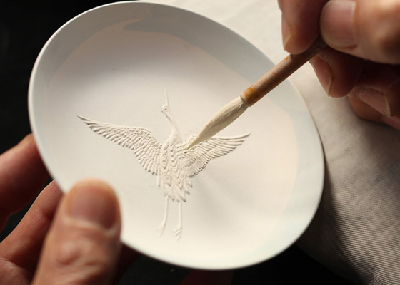 置き上げはさまざまなタイプがあります。私は鳥の絵が一番やりやすいです。作品を外に出して恥ずかしくないと思ったのが、鶴と龍の盃を制作したときです。