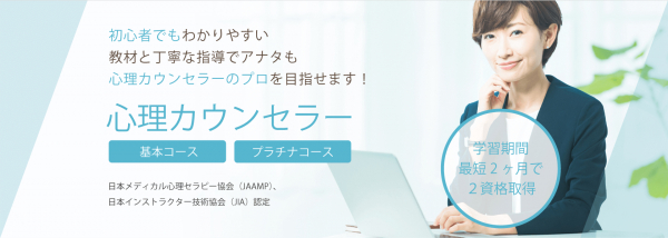 心理カウンセラー基本コース/プラチナコースでは、テキストに沿って学習できるので初心者の方でも問題なく学ぶ事ができ、人気の講座となっています。