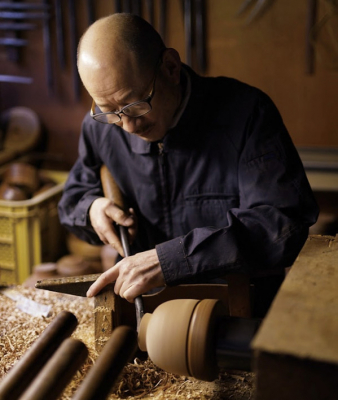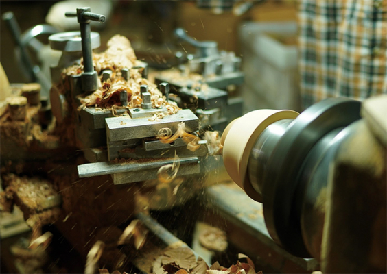 山中漆器は、山師から始まり、荒挽き屋、木地屋、塗師屋の手を経て一つの器が出来上がります。 漆を塗る前、木を削り出し器を形作ることが「木地師」の仕事です。