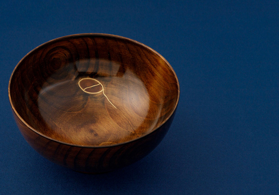 木は枝があり節があり、この芽が伸びる節=芽節は、これまで「硬くて刃が傷みやすく挽きづらい」「節から割れが入っていることがある」「全体数からしたら少ないので扱いづらい」などから廃棄処分となっていました。芽節の価値を再定義し、芽節の縁取りに蒔絵師の手によって金が施され、各々の芽節は世界で一つしか存在しない、木の個性を活かした器を生み出しています。