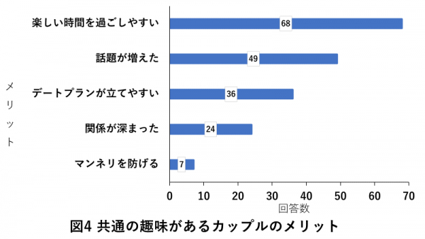 カップルのうち8割が共通の趣味を持っていることが明らかとなりましたが、実際に共通した趣味を持つことでどういったメリットを感じられるのでしょう。