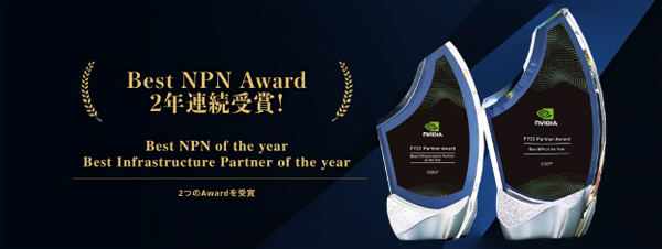 また、同時に受賞した「Best NPN of the Year」は、国内の全てのNVIDIA認定パートナー(NPN)の中で、最もビジネス貢献が高く、NVIDIA社と密に連携し同社のビジネスと市場の拡大に大きく貢献したパートナーに贈られる賞となります。