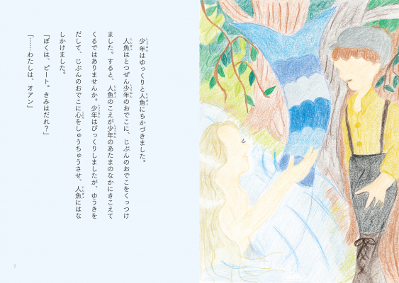 くらい町に住んでいる少年ピートは、森の中の小さな池で少女の人魚オアンと出会います。ピートは毎日オアンに会いに行き、心を通わせあう二人。ある日オアンに教えてもらった歌をピートが口ずさむと、まわりにいる人々や町がだんだんとかわってゆき……?