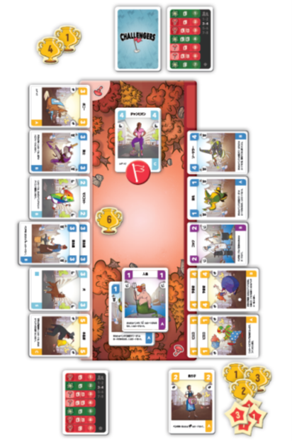 数字が上回った時点でめくるのを止め、一番上のカードにフラッグを置き、それまでフラッグを保持していたカードはベンチへ置かれます。この攻守交替を繰り返しながらゲームが進みます。