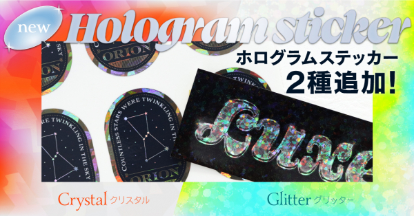 シール・ステッカー印刷をはじめ、オリジナルTシャツやパッケージなどをWeb上でデザイン作成、そのまま注文することが可能な「印刷通販デジタ(https://www.digitaprint.jp/ )」を運営する、株式会社デジタ(https://www.digita.co.jp/ )は、2023年7月8日(土)、屋外用ステッカー印刷にホログラム素材「ホログラム-クリスタル」「ホログラム-グリッター」の取り扱いを開始しました。