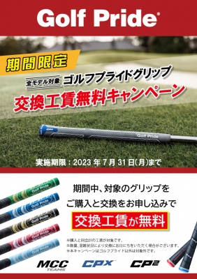 ■内容:期間中にゴルフプライドグリップのご購入と交換をお申込みでグリップ交換工賃が無料