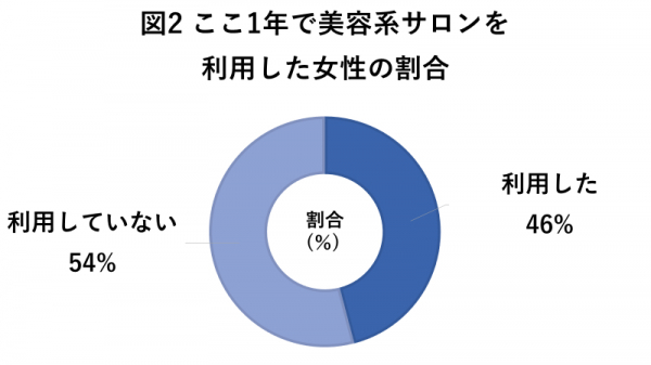 全国の女性220名のうち、ここ1年間で美容系サロンを利用した女性は46%。対して、利用していない女性は54%を占めていました。