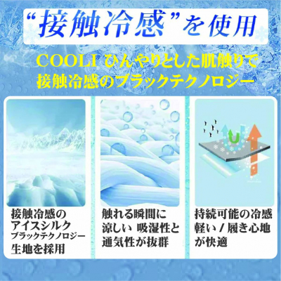 【接触冷感アイスシルク】肌にあたる内側にはひんやり接触冷感&吸水性・速乾素材を採用。暑い日もサラッと快適な着け心地。